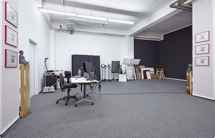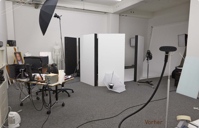 Das Studio wurde an die Bedürfnisse des Fotographen angepasst, so dass er es individuell an seine Kundschaft anpassen kann. Ordnung und Struktur waren hier besonders wichtig in dem großen Raum ohne Trennwände.
