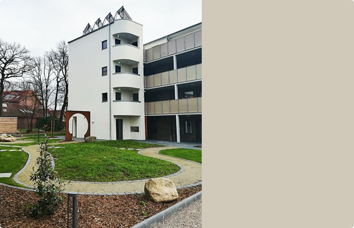 „Erst durch die Begleitung von Vera Apel konnte die Planung der 40 Wohnungen gelingen. Mit den nach Frau Apel ermittelten Positionierungen der drei Gebäudeteile wurden die Weichen für eine nach Feng Shui durchdachte Wohnanlage gestellt.