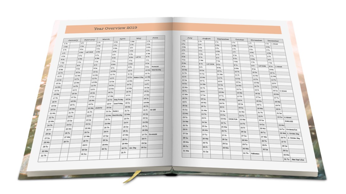 Der Kalender ist als HARDCOVER BUCH oder SOFTCOVER RINGBUCH erhältlich.
