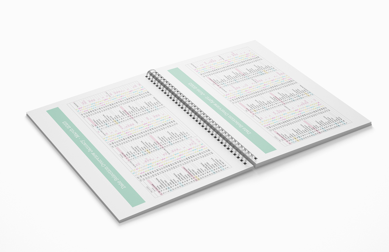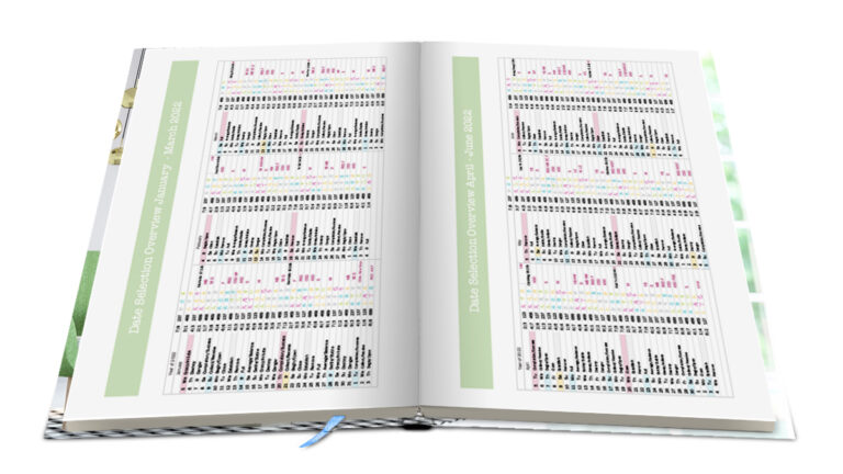 · 3 Monats Übersichten für die Date Selection, mit allen notwendigen Informationen: