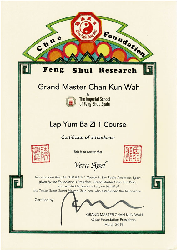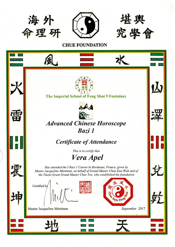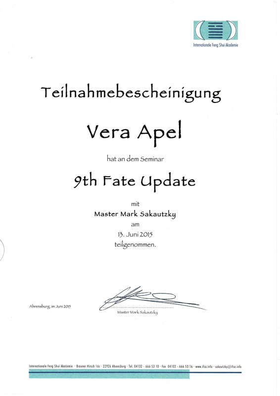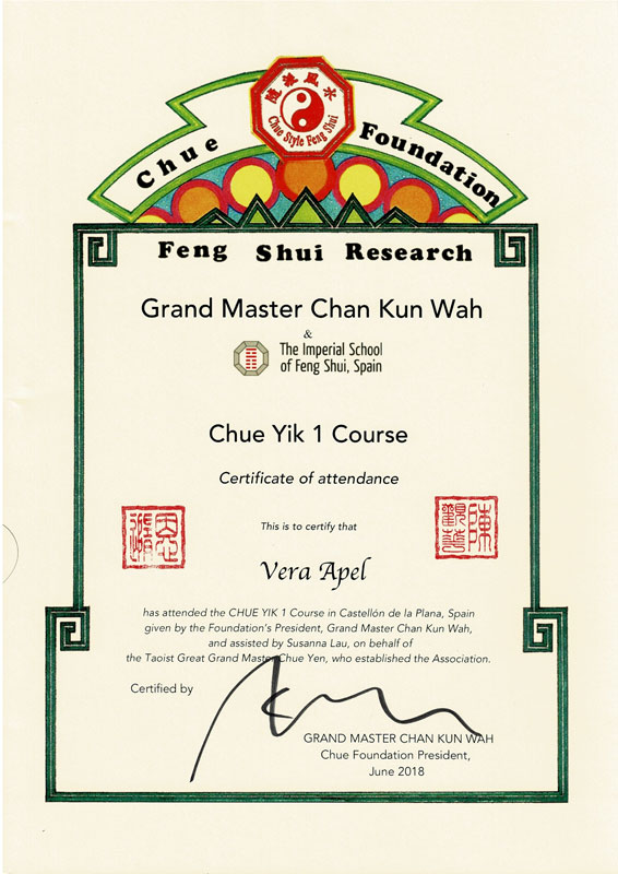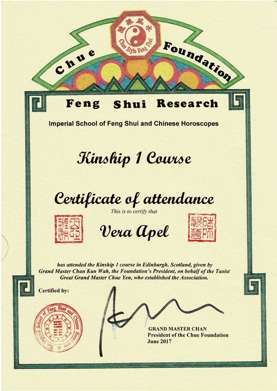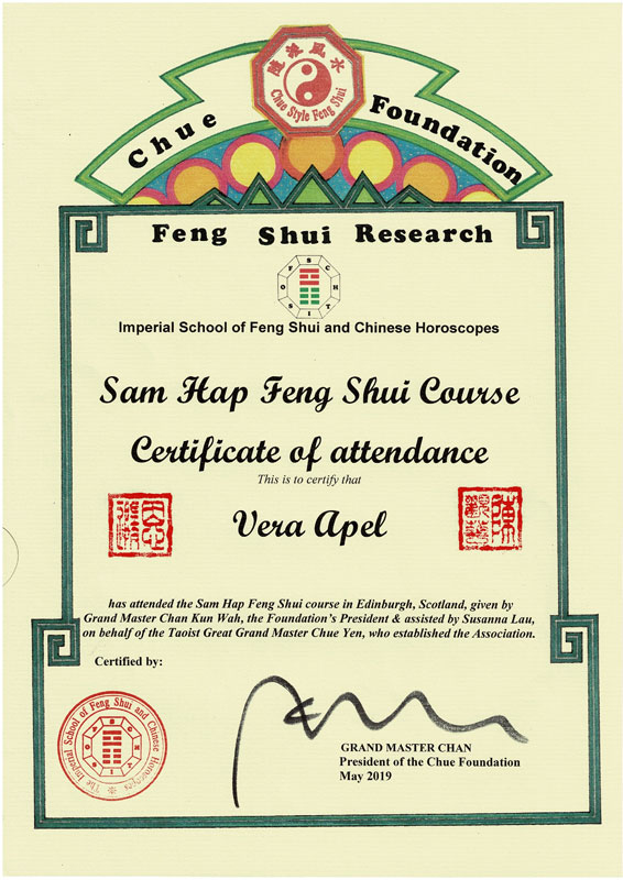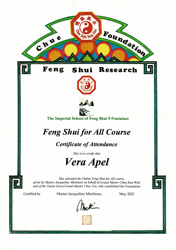 Zertifizierter Abschluss · Imperial Feng Shui Practicioner (IFSA)