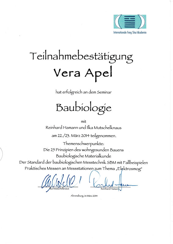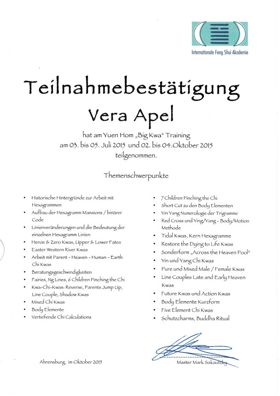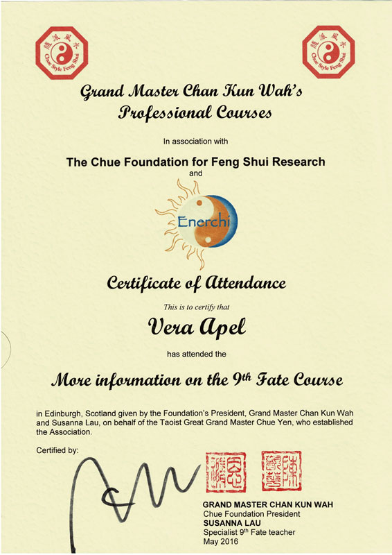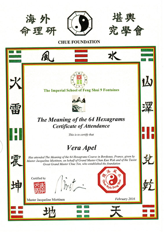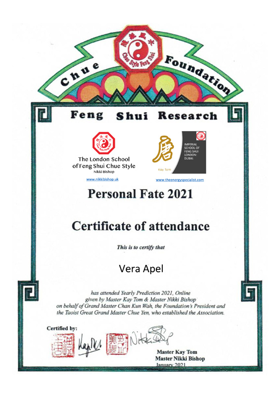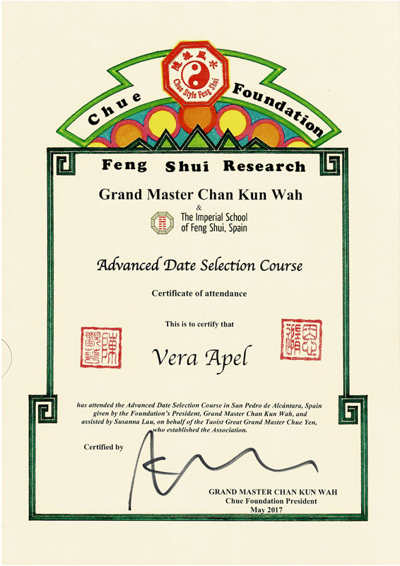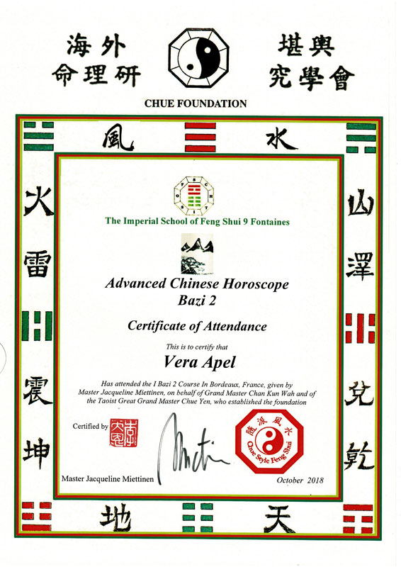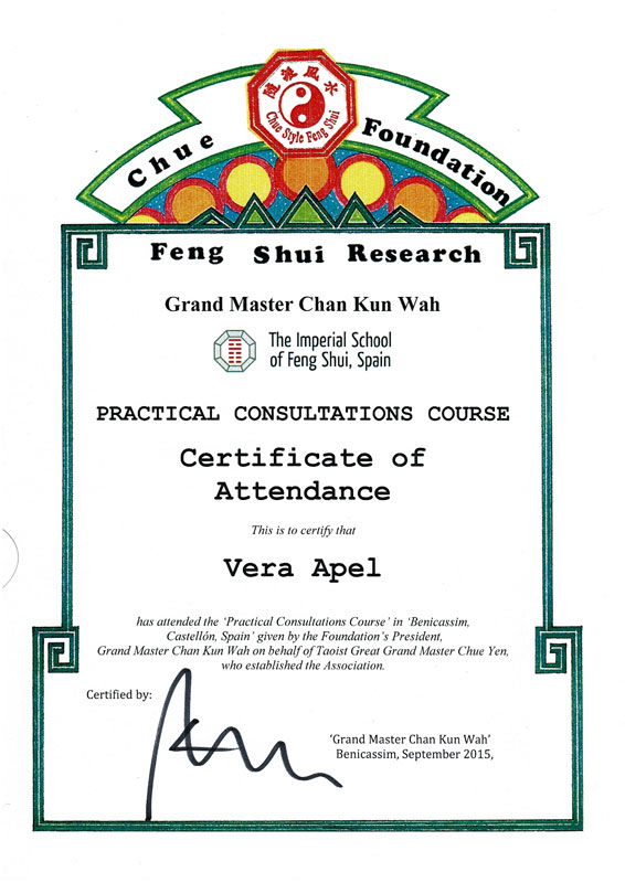 Zertifizierter Abschluss · Imperial Feng Shui Practicioner (IFSA)
